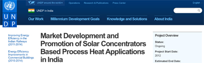 UNDP / MNRE Indien: International Technical Consultant für die Entwicklungsphase des Projekts "Market Development and Promotion of Solar Concentrators based Process Heat Applications in India" (http://www.undp.org/...)